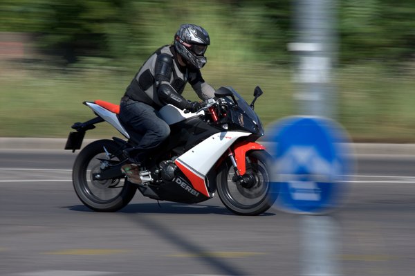 A spanyol gyár GPR-je az egyik legszebb és legdinamikusabb formájú sportgép. Külsejét tökéletesen eltalálták: felidézi a világbajnokságban köröző motorokat, ívei ugyanolyan vagányak, mint az ezer köbcentivel nagyobbaké. Muszáj: elavult formával nehéz lenne elcsábítani a különösen trendérzékeny fiatalokat. A Derbinek nem is nagyon kell vakítania – 1922 óta vagy húsz világbajnoki címet szereztek. A sport náluk nem csak múlt; máig sikeresek a gyorsasági világbajnokságon.