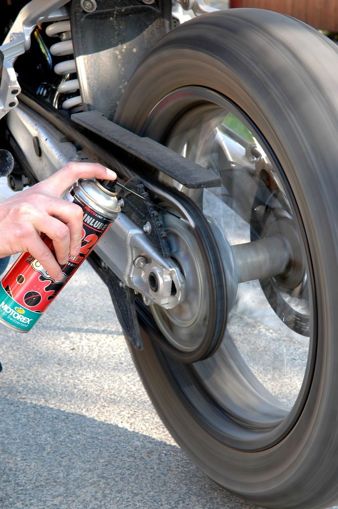 A görgők és lánckerék kapcsolódási pontjánál fellépő Hertz feszültség miatt úgynevezett EP (extreme pressure) adalékolás is szükséges. Ez hasonló a váltókban alkalmazott, a fogaskerékpárok kapcsolódásánál fellépő feszültségcsökkentésre használt adalékhoz. Amikor megállunk a motorral, a lánc kicsit meleg, ekkor kell ráfújnunk. Nem sokat, csak annyit, hogy ne csepegjen le róla. Szükséges állni hagyni úgy negyedórát, ennyi idő kell, hogy a hordozóanyag elpárologjon. Oldalról, kívülről nem érdemes a láncot fújni, ott nincs csúszó rész, csak a koszolódást növeli.