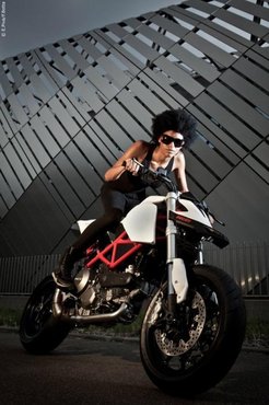 Tanulmányuk alapja a sikeres Griso. Az elmaszkírozott első futómű trapézvilla látszatát adja, de sajnos kamu, pedig a Confederate óta tudjuk, hogy a régies megoldás működőképes és vezethető. A fiatalok csoportja egy Hypermotardot is áttervezett: a Ducati kanyarvadásza még agilisebbnek tűnik a felfrissített idomok alatt.