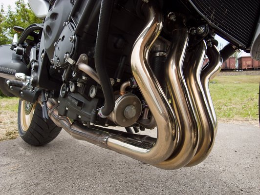 Valójában sokkal több és szimpatikusabb módosítás esett a motoron. Könnyebb a főtengely, a Yamaha széria motorjai között az eddigi leghosszabb leömlők szaladnak lefelé függőlegesen (majd hátra) az erősen megdöntött hengersorokról, a szélső hengerek hosszabb szívócsatornán kapják a levegőt (28 mm a különbség), mint a belsők, ezért két henger inkább a jó nyomatékleadásban, kettő pedig a nagyobb teljesítményben ügyeskedik – érdekes az aszimmetria, remélem, a Yamahánál a tartósságot is figyelembe vették. És rövidebb a váltó első két fokozata, hosszabb a legfelső kettő, a köbcentikhez képest pedig ez nem is erős a motor, hiszen csak 106,2 lovat tud. Így lesz nagy a nyomaték, sima, kiszámítható a működés – abszolút pártolom ezt a hangolást.