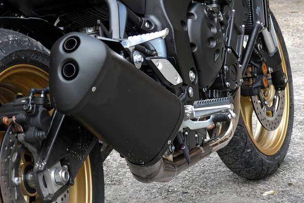 Az FZ-8-asról azt kell tudni, hogy egy igazán profi tesztelőnek kötelező fanyalognia rajta. A blokk az FZ-1-esé, kisebb furatú hengerekkel. A váz is kábé az FZ-1-esé, de itt elspórolták az alumínium hátsó lengővillát. A futómű is nagyjából az FZ-1-esé, de itt semmi sem állítható a hátsó rugóstag előfeszítésén kívül (értsd: postás MZ-szint, ami már negyed százada is kevés lett volna). Nyaf-nyaf-nyaf, zokog-zokog-hüpp. Én pont letojom ezeket a dolgokat, nem sportmotorról van itt szó, az átlagos hülye úgyis csak az előfeszítéshez nyúl egész életében. Ha egyáltalán. Nekem más lesz a bajom, de erről később.