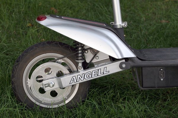 Mivel az Angell, kell-e mondanom, kínai gyártmány, minden kínai rajta, alkatrészei többségén a Wuxing felirat díszeleg. Egy (valószínűleg, a Wuxi Angell Autocycle Co. által gyártott) kínai termékről nem az jut az ember eszébe, hogy unokái is látni, mi több, használni fogják, és hát ez a roller se úgy fest, mint amelyik kimenne a világból is, ha lenne elég kakaó az akksijában. Mivel azonban idejének 99,99 százalékát a garázsban tölti, lehet, hogy mégis hosszú életű lesz.