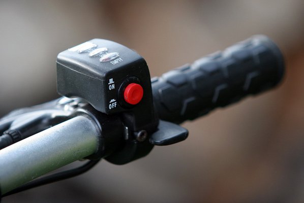 Pattanjunk is nyeregbe, és lássuk, hogyan viselkedik az úton a villanyszamár. Egy ilyen izét vezetni a világ legegyszerűbb dolga. Alul, az akkumulátortartó oldalán bedugjuk a slusszkulcsot, elfordítjuk, a jobb oldali kormányszáron levő kis fekete doboz oldalából kiálló billentyűt lenyomjuk, és már gurul is az Angell. Minél mélyebbre taszajtjuk a billentyűt, annál gyorsabban megyünk, elméletben legalábbis, mert a terepviszonyok erősen befolyásolják a sebességet.