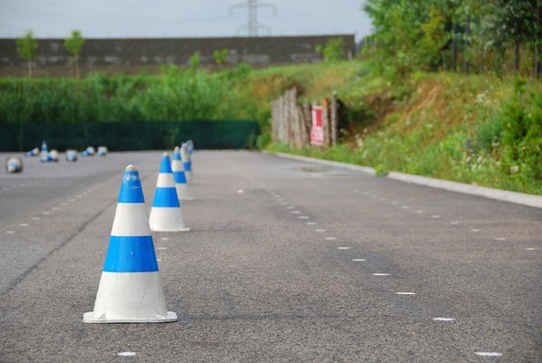 A gyakorlati feladatok a monitor elől egyszerűnek tűnhetnek, de nem feltétlenül azok. Az egyenes szlalom valószínűleg mindenkinek menne, de ahogy a két nap alatt refrénként ismételgettük ezt a gyakorlatot minden feladat előtt vagy után, egyre magabiztosabban mentünk végig - kétségkívül készségszintre fejlesztettük. Az eltolt szlalom már nagyobb koncentrációt igényel: itt bójákból kirakott szűk íveken kell végigmotorozni egyenletes gázzal és hátsó fékkel - ha nem koncentráltunk eléggé, ezt még a végén is el tudtuk rontani. A fékezést negyvenes tempóról gyakoroltuk, itt is látványos fejlődésen mentünk keresztül. Viszont lett volna még mit csiszolni a szűk íven kanyarodáson: ezt háromféle technikával tanultuk, háromféle sugarú körön, de a legszűkebb egyikünknek sem ment még a tanfolyam végén. Szerencsére ez csak a következő szinten kötelező tananyag.