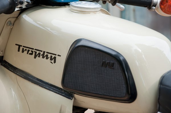 Így vagyunk a Trophyval is. Technikailag nem nagy csemege, ám formája mai szemmel nagyon beteg. Akkoriban ezt is tucatmodellnek tervezték, de mostanra az egyik legszeretettebb NDK motor lett. Aki ennél is furcsább kinézetű szoci gépet tudna a garázsban, az csak a Jawa Bizonhoz nyúlhat. Míg az MZ kifejezetten gyakori, addig a rendkívül tömör cseh kétütemű ritka csemege. Magyarországra nem is hozták, itt a szappantartó dizájn egyetlen képviselője a Trophy.