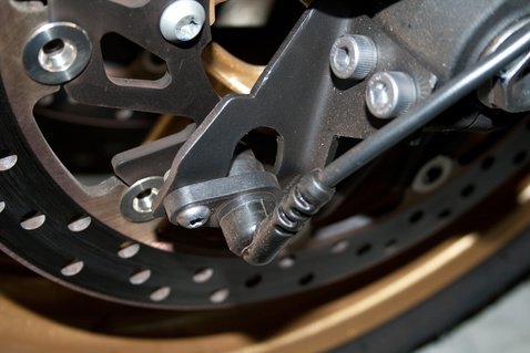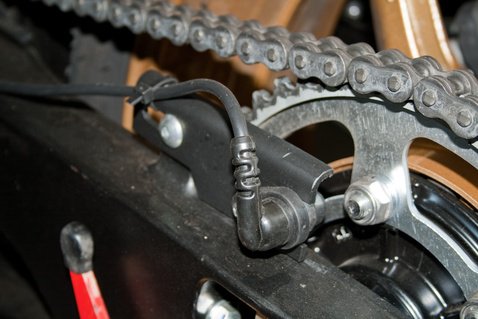 Ez eddig pofon egyszerű. Állítólag a beszerelés sem egy truváj, van hozzá egy szép kis prospektus. A szenzorokat fel kell csavarozni a teleszkópvilla aljára, illetve a lengővilla végére, és az előttük elhaladó csavarokhoz mért távolságukat be kell lőni 1-1,5 mm-re (a gyári leírás szerint 4 mm-re, de úgy nem működött). Innentől kezdve persze porcelán makettként kell kezelni a motort, mondjuk egy kerékcserénél, mert a biblia által megadott milliméternek stimmelnie kell. A végrehajtó szárat a trafókhoz kell csatlakoztatni. Négyhengeres motoroknál a két középső, három hengeresnél a két szélső hengerhez tartozóra, kéthengeresnél meg valamelyikre.