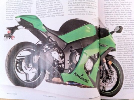 A Kawasaki jövő évi ezer köbcentis szupersportmotorjának végleges változatáról készített műtermi képeket futtatja következő számának címlapján a Cycle World magazin. Bár a fotók azóta feltűntek több neves angol lapnál is – az MCN-nél, például –, a Kawasaki kifejezett kérésének eleget téve azokat október 5-ig, a hivatalos bemutatóig nem jelentetik meg.