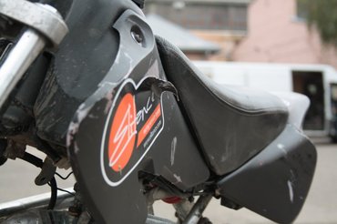 A képeken látható kis fekete pitet is egy ültetett Opel Calibrára gyűjtő, az interneten kuncsaftra vadászó emberke hozhatta be – valamikor. Én egy bontóban jutottam hozzá: ott feküdt egy nagy darab tömbbé rohadt alkatrészkupac tetején. A szaki azt mondta, indul, megy, működik, hozzá is véletlenül hozták, de neki nem kell, ha szépen nézek, egy ötösért vihetem. Soha nem éreztem különösebb vágyat aziránt, hogy egy ilyen pitbike-nak a tulajdonosa legyek. És azzal azért már akkor is nagyjából tisztában voltam, hogy a márkajelzés nélküli, szemmel láthatóan vásári minimotoroktól, amiket akkoriban a Sárkány Center tollasabb farmerárusainál is már többféle színben lehetett kapni, szóval hogy azoktól félni kell.
