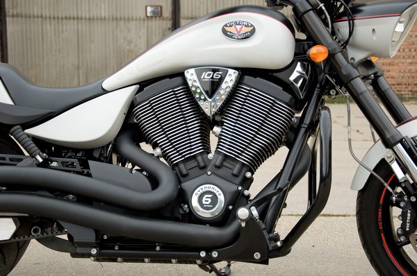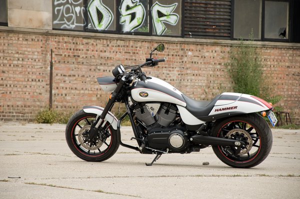 A Victory Hammer S jobb az átlagnál. Nem az adatok miatt mondom, hisz sem a 97 lóerő, sem a 153 Nm nem világrengető érték. Soknak ugyan sok, de ismerünk olyanokat, amelyek ennél többet tudnak. Ez a motor szimplán csak végiggondolt és jól sikerült; ebben nagy szerepe van annak, hogy a márka új – 1997-ben mutatták be első gépüket. Nem a kezdők szerencséjére gondolok, hanem arra, hogy tiszta lapot tehettek a tervezőasztalra, nem kötötte kezüket a hagyomány. Nem volt szükséges kínos módon a múltra építkezniük, mint a fő konkurens Harley-Davidsonnak.