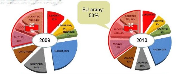 A tavalyi 29-ről 36 százalékra nőtt a mindennapi közlekedésre alkalmas motorok eladása, ezek zöme nyolcadliteres. A bizottság mai döntése annak tükrében is meglepő, hogy az Európai Unióban 53 százalékos a kategória részesedése. A jó eredményben szerepet játszik a kis helyigény és az alacsony üzemeltetési költség ugyanúgy, mint az, hogy rengeteg országban lehet B kategóriás jogosítvánnyal 125-ösöket vezetni.