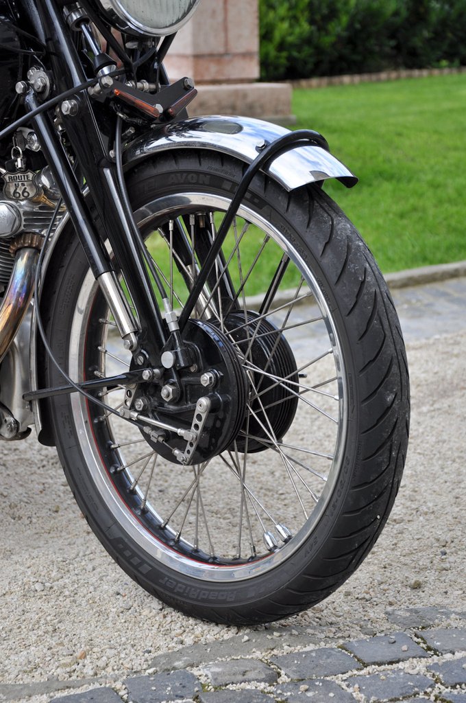 Egyfolytában a V2-esről beszélünk, pedig a Vincent jelentősége nem csak ebben rejlik. A váza még mai szemmel is csodálatos, gyártásának idejében pedig szimplán még sosem látott űrtechnika volt. A villanyaktól csupán a hátsó ülésig húzódik pár kiló vas, a blokk teherviselő elem – ilyennel tizenöt évvel később a Moto Guzzi próbálkozott. A központi rugós lengővilla – értik, köz-pon-ti ru-gós – közvetlenül a motorhoz kapcsolódik, csupán a hidraulikus csillapítás felső pontja van összekötve a vázzal.
