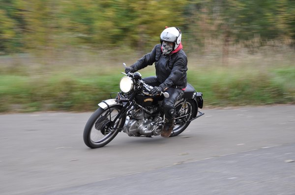 Egy francia barátja segítségével önindítót kapott a Rapide; egy kis játék a dekompresszorral, majd gombnyomásra feléled a csodálatos V2-es. Sportsteres karaktert vártam, de teljesen más, mint az amerikaiak motorja. Finoman jár, az 55 fokos hengerszög csodás hangot ad. Érezni, hogy nincs kihegyezve – aki földöntúli módon tuningolt Vincentekre kíváncsi, Ausztráliában nézelődjön. Ott száz lóerő fölötti pályagépeket építenek, amelyek a nyílt bajnokságban volt, hogy a Ducatikat is leverték. Betegek mind.