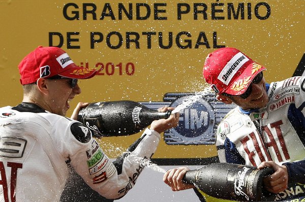 Jorge Lorenzo győzött Estorilban, de már a világbajnoki cím is az övé. Ezzel a Yamaha megszerezte az egyéni, a csapat és a konstruktőri elsőséget is. Lorenzónak 358 pontja van - ha Valenciában, az utolsó futamon még 15 pontot szerezz, megdöntheti Valentino Rossi 2008-as, 373 pontos rekordját.