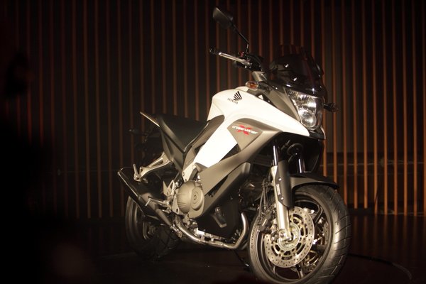 Először egy koncepciómotorral hergelték a közönséget – ügyesen egyébként, mert egyáltalán nem számítottunk rá, hogy fél óra múlva lelepleznek egy ezzel majdnem teljesen megyegyező másik modellt, ami viszont már rajta van az idei palettán. A VFR1200F blokkjára épülő kalandmotor, a Crosstourer valószínűleg a jelenlegi Varadero utódja lehet a jövőben, bár erről így, ennyire nyíltan nem beszéltek. Ahogy nézegettük, ez egy majdnem teljesen kész, szériaérett terméknek néz ki – egyáltalán nem lepődnénk meg, ha a 2012-re már bedobnák a mélyvízbe.