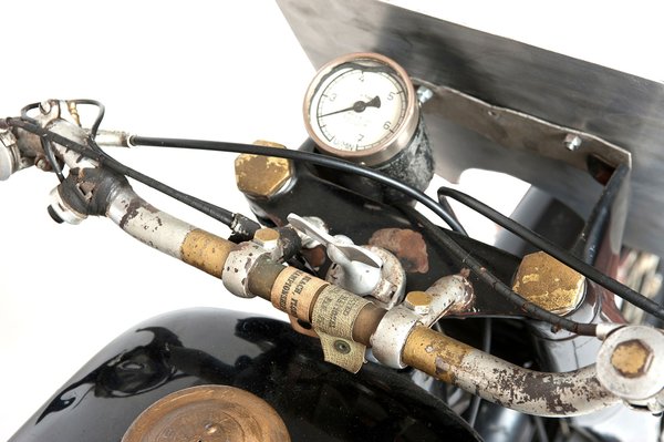 A sárvédőn még megtalálható Rodenberg szponzorának, egy Indian kereskedésnek a matricája is. A kisméretű 7000 fordulat/percig skálázott fordulatszám-mérő a 97-es rajtszám mögött található, amely a különböző versenyek során láthatóan elhasználódott.