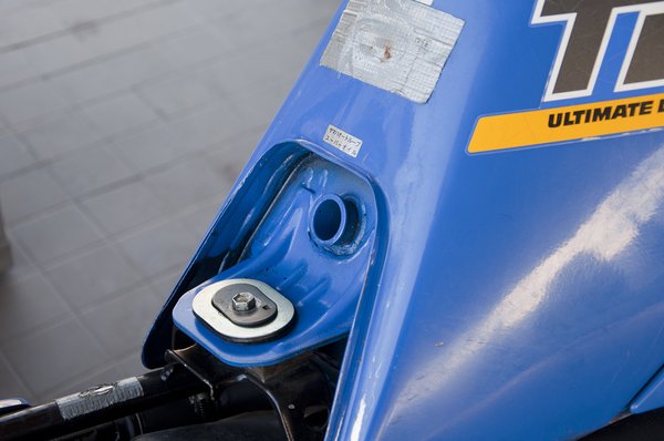 Aki az ülés alá, a tank oldalába jóformán függőlegesen beépített kenőanyag betöltőt odafosta, azt gond nélkül küldeném a véres szigetre egy Battle Royale-ra. Tölcsér vagy kígyós flakon nélkül lehetetlen beletölteni – a benzinkúton egy félliteres palackot vágott el nekem a személyzet, aminek szája persze szélesebb volt a lyuknál. A TDR-esek erre biztosan fel vannak készülve – a zsebtölcsér kötelező tartozék lehet.