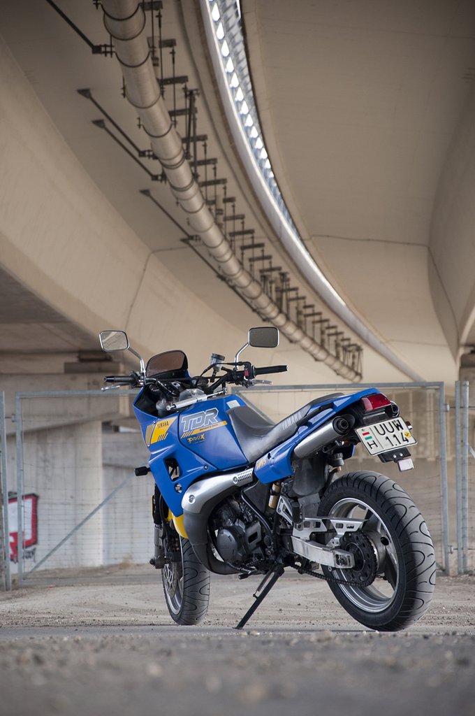 Az első hónapok a javítással teltek, normál furatot és bontott hengerfejet kapott a TDR. A gyári dugókat utángyártott Proxra cserélték. A helyreállítás sikerült, azóta is gyönyörűen megy a gép. A csökkentett mértékben, de állítható futómű úgy tűnik, nem felelt meg az előző gazda igényeinek – javító szándékkal beletette egy első szériás Fazer 1000 komplett futóművét. Jó ötlet volt? Nem.