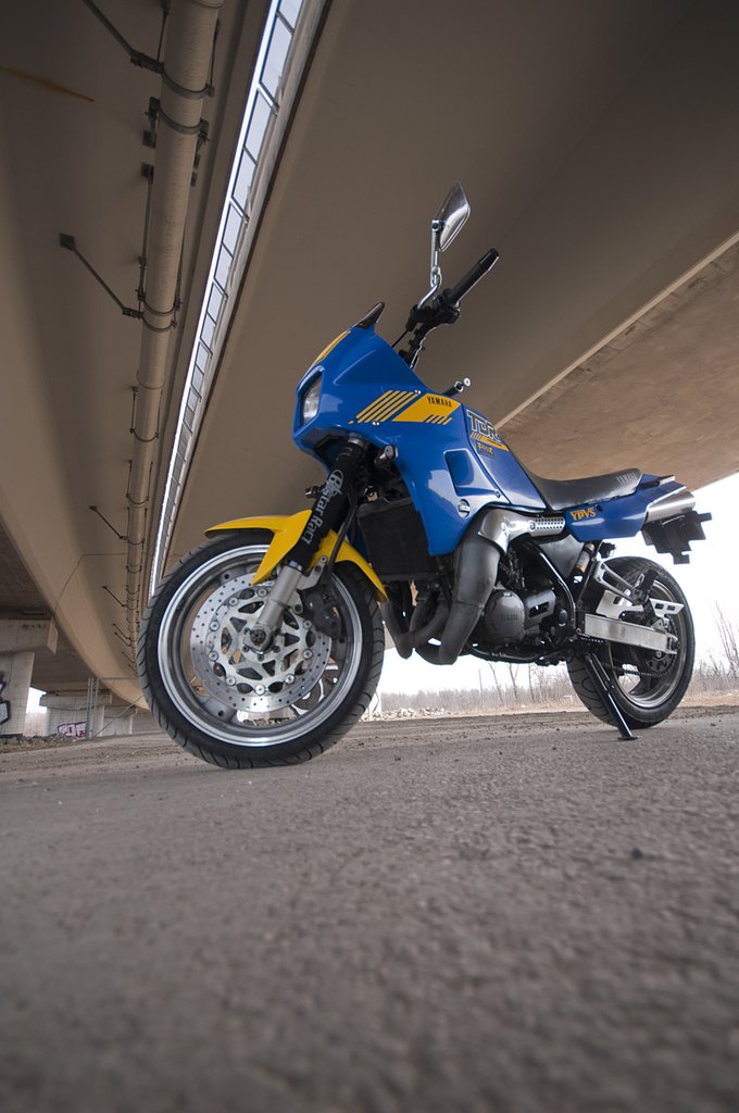 A Yamaha mérnökei szerették volna meggyőzni a bigott aszfaltosokat, hogy egy murván is magabiztos gépnek nem kell trehánynak lennie a gyors kanyarokban. Hittek benne, hogy mindkét felületre egyenértékű motort tudnak alkotni. Tulajdonképpen sikerült: a negyedliteres Yamahájuk kultusztárggyá vált, szerpentinek és városi utak kegyelmet nem ismerő büntetőjévé.