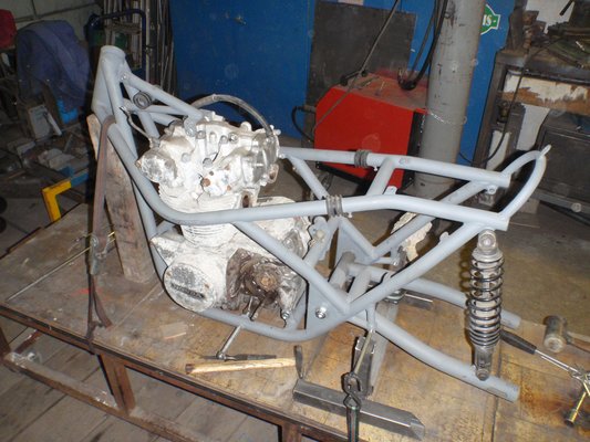 Ha sikeresen szétbontottuk a donort, nekiállhatunk az építésnek. A felületekkel egyelőre ne foglalkozzunk, mert a munka során biztosan köszörülünk és hegesztünk majd; nagy eséllyel újra kéne csináltatni mindent. Ha nem az eredetit használjuk, akkor a motorblokkot helyezzük a kiválasztott vázba. Törekedjünk arra, hogy a hossztengelyhez viszonyítva pontosan középre kerüljön – itt a hengersor közepét kell figyelembe vennünk, nem pedig a teljes szélességét, mert a legtöbb blokk aszimmetrikus.