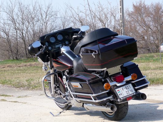 Electra Glide-okból eddig valahogy mindig az Ultra Classic volt nálam, vagy Police, és azt hittem, az Ultra Classic csak afféle kötelező szóvirág egy olyan motornál, melynek vezeték- és keresztneve 2011-ben is azt jelenti, hogy van rajta önindító (Electra), és elöl-hátul rugózik (Glide). Átvettem a tesztmotort, jöttem vele végig a városon. Az egyik piros lámpánál beálltam egy Honda Rune mellé, elkezdtem bámulni, mert élőben aztán végképp elképesztő ez a tudományos-fantasztikus manga-cruiser. A srác a Rune-ról viszont a Harleyt bámulta: úristen, de szép felni, ilyet még nem is láttam! Akkor jutott eszembe, hogy én sem, hiszen nem nézegettem sokat a tesztmotort, amikor elhoztam.