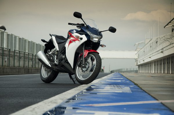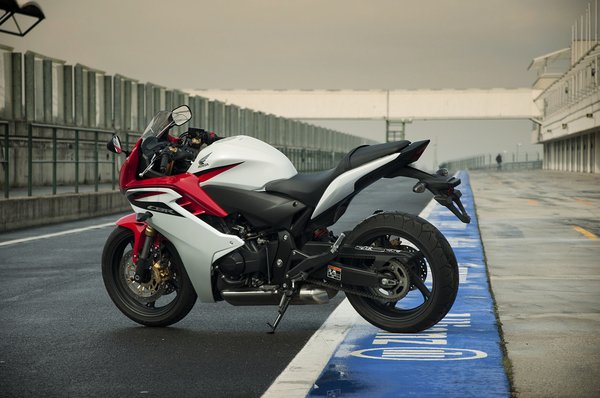 Ha messziről nézzük, lényegesen nagyobbnak hat; erről a trükkösen megtervezett idomok tehetnek. Fekete színben nem adja igazán, de a tradicionális trikolor nagyon jól áll neki. A megtévesztő optika ellenére rövid combok alá is passzol a CBR – fiatalok, nők vagy a praktikumot kereső motorosok is értékelni fogják a 161 kilós össztömeget.