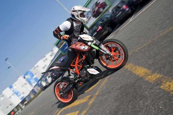 A 2011-es motorkerékpárok közül három gépre voltam igazán kíváncsi. A Honda CBR250 megvolt, a Kawasaki W800 elérhetetlen, mert az importőr nem állított be tesztmotort (aki esetleg felajánlaná a sajátját néhány órás tesztre, jelentkezzen, köszönöm), a KTM Duke 125 pedig most lett meg – komolyan mondom, megérte rá várni.