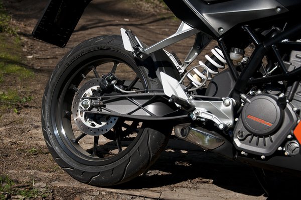 Messziről általában jól mutatnak, az arányokat igyekeznek a felnőtt gépekhez igazítani – nem véletlen, hogy úgy néznek ki, mint ezres nagytestvéreik. Közelebb lépve azonban szemet szúrhat az öntött villahíd, a filléres futómű és a sok B kategóriás műanyag. Legyünk igazságosak, ez egyáltalán nem baj, hisz ettől a kategóriától kevesen várnak csodát. Ezen keveseknek gyártották a KTM új utcai bébijét, a Duke 125-öt.