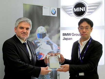 A BMW Motorrad helyi vezetője, Ekrem Sak vette át a Supertest World Association díját Icsimotó Koheitől, a Young Machine magazin szerkesztőjétől – a bajor cég még soha nem nyert semmit az ázsiai országban.