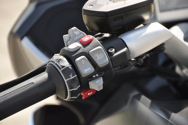 A váltó finom, bár a csattanásokba még a kormány is beleremeg. Az már kevésbé tetszett, hogy nagyon sokszor kapcsoltam ürest kettes helyett. Erre aztán lehetne azt írni, hogy a váltó határozottságot igényel, de egy váltó a hétmilliós árkategóriában ne igényeljen semmit, hanem kapcsolja a kettest, és kuss. Az elektromos jeltovábbítású gázkar kicsit furcsa, leginkább talán az idegessége miatt. Bovdennél mindig van egy kis holtjáték, azt ebből kifelejtették. Pedig alapvetően nem rossz dolog a motorozás by wire, hiszen ha van egy járműnek országúti, dinamikus és esős aszfaltra kitalált üzemmódja, amit a jobb markolatról állíthatunk, épp a gázreakciókat tudja adott esetben kisimítani egy kicsit.