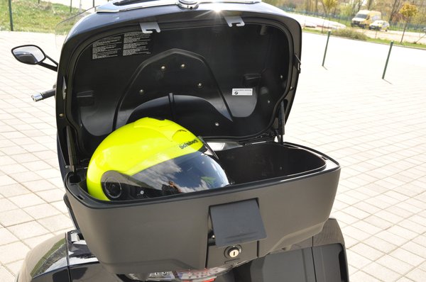 A szokásos, kitűnően pakolható bőröndök várnak, az oldalsókat különösen könnyű le- és felpattintani. A 49 literes felső pedig pneumatikus kitámasztót és belső világítást kapott. Az oldaldobozokon van egy jó kis krómozott műanyag díszcsík, ami akkor igen hasznos, ha megfeledkeztünk a szélességünkről, és lezúztuk valami oszlopon. A kofferekhez pedig jár a központi zár, ami nem csak a három nagy dobozt reteszeli, hanem a két kis első rekeszt is, melyek közül a jobb oldaliban a hifire dugott zenelejátszó egységek laknak. A kovácsolt alumínium kormány szép, és nyilván könnyű, de a markolatok nekem kicsit vékonyak. Érdekes, a BMW autókormányban hagyományosan vaskos fogásút gyárt, motoron meg ezeket a pálcikákat erőlteti. Persze ha nem tetszik, biztos vehetek másik fűtött markolatot százezerért.