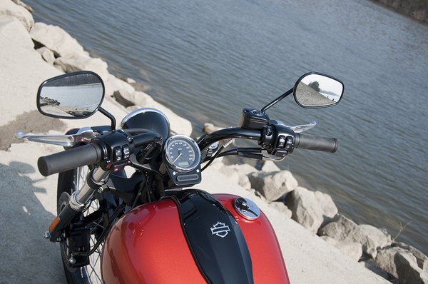A műszert nem a 19 literes tankba, hanem előre, a kormányhoz szerelték, így már nincs szükség a folyamatos sandítgatásra, ha kíváncsiak vagyunk a tempóra. Az LCD-vel kiegészített műszer a még megtehető távolságról is informál – korántsem nyugodt motorozással nekem 6,1 literes átlagfogyasztást produkált a 290 kilós Harley-Davidson Blackline.