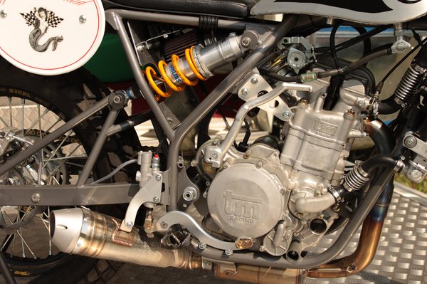 Az egyhengeres, 530-as TM-blokk úgy büfög, mint egy román tolóhajó. A közel 60 lóerős, 60 Nm-es, négyszelepes blokk hatalmasat rúg mindegyik sebességfokozatban, a vézna, ártatlan tekintetű motorkerékpár üvöltő vadbarommá változik a trevisói forgalomban.