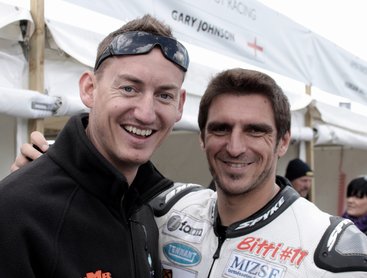 Most pedig következzen Bitter Sanyi. A Senior TT napján végül sikerült beszélnünk vele. Nem volt túl boldog a csapatot illetően, hiszen egy teljesen széria motorral küldték pályára. Elmondta, hogy gond van a váltó áttételezésével, a motor 300-nál ledurrog és neki jóval nagyobb tempóra lenne szüksége. Segítője az itthon Bimotával versenyző Henzsely Csaba volt. A csütörtök esti egy körös edzésen nem tudott részt venni, mert az egyik szerelő miatt az első villájából elfolyt az olaj. A körülmények ismeretében igen tiszteletre méltó a megszerzett 32-dik hely. Jelentem, Sándor komplett versenyfelszerelése úton van, itt, az autónkban.