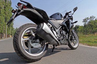 A CBR250R egyébként egy szépen megcsinált kis gép, a maga nemében minden rendben van, szépek és finoman működnek a kapcsolók, jól állnak a burkolatok, a kuplung- és fékkar kis erővel kezelhető, a markolatok szépek. A guszta műszeregység részben digitális, ezt ma már nem lehet megúszni, de a fordulatszámmérő megmaradt mutatósnak. Üzemanyagszint-kijelzés van, napi számláló is, fokozatkijelzés nincs, csak az üresnek. Talán itt-ott kilátszik pár nem túl szép hegesztési varrat a vázon, de az összbenyomás az, hogy igazi Honda, nincs harmadik világ feeling, noha Thaiföldön gyártják. A tesztmotoron volt kombinált fékes ABS is, ez a változat egy százast dob az alapáron.