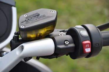 A kuplung kétujjas, hiszen szervó segíti, ezt érezni is néha abból, hogy a hébli pulzál. Nem igazán lineárisan működik, értsd: sok-sok megszokás kell ahhoz, hogy rántás nélkül indulj, hogy váltáskor ne csattogjon az összes fogaskerék. Bénáztam is vele egy darabig, mire rájöttem, hogy a kuplung máris nem annyira kiszámíthatatlan, ha a menetdinamikai rendszer (ami a rugózást és a gázmarkolat érzékenységét vezérli) nem dinamikus, hanem túra állásban van. Mindjárt finomabban tudtam motorozni, innentől élveztem igazán a dolgot.
