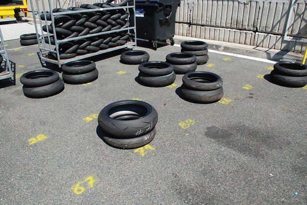 A gumis kamionok közt folyamatosan pörögnek a kerékszerelők, akik nagyon nagy urak. Ha valaki piszkos felnin viszi a kerekeit szereltetni, azt elküldik. Ezt az egyik kitelepített Pirelli menedzser azzal magyarázza, hogy képzeljem csak el, mennyi időbe tellene nekik minden versenymotor felniét lemosni. Vasárnap este a csapatoknak vissza kell szolgáltatniuk a használt és megmaradt abroncsokat, a Superstock vagyis a közel utcai sportmotorokkal indulóknak éppúgy, mint a WSBK, vagyis a Superbike világbajnokság versenyzőinek, akik pályaabroncsokkal és erősen módosított motorral mennek.