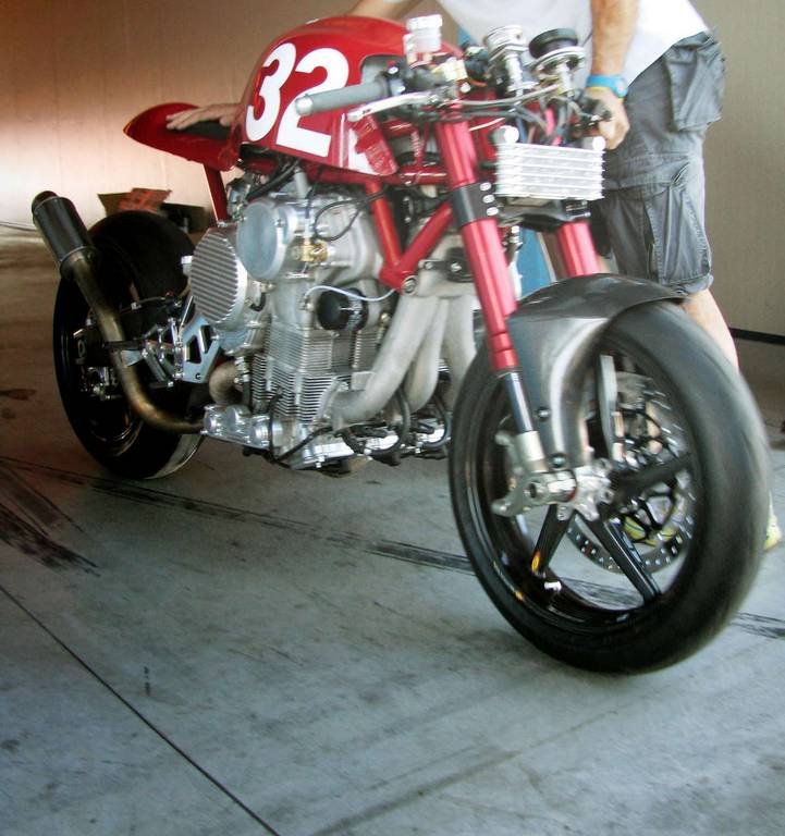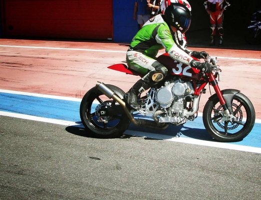 Daniele Sabatini tervező szerint 200 vagy akár 250 lóerős teljesítményt présel ki magából az új olasz café racer, a Nembo 32 óriási motorblokkja, mely kiviteltől függően 1925 vagy 2045 köbcentis lehet. Mint korábban megírtuk, az olaszok szokatlan motorfelépítést eszeltek ki, hiszen a főtengely ott van ahol más motorokon a hengerfej, vagyis a blokk teljesen fejre állítva került a vázba. A soros háromhengeres motor köré épített vörös borzalom nemrég megfutotta első tesztköreit az olaszországi Franciacorta versenypályán.