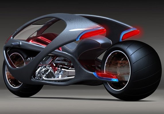 A két óriási abroncsot egy hathengeres hajt, melyen csupa nagybetűvel ott díszeleg a HYUNDAI-felirat. A koncepció szép lett, és látványos. Egy apró probléma van még vele, mégpedig az, hogy a fantáziarajzon a motoros Suzukis védőruhát visel.