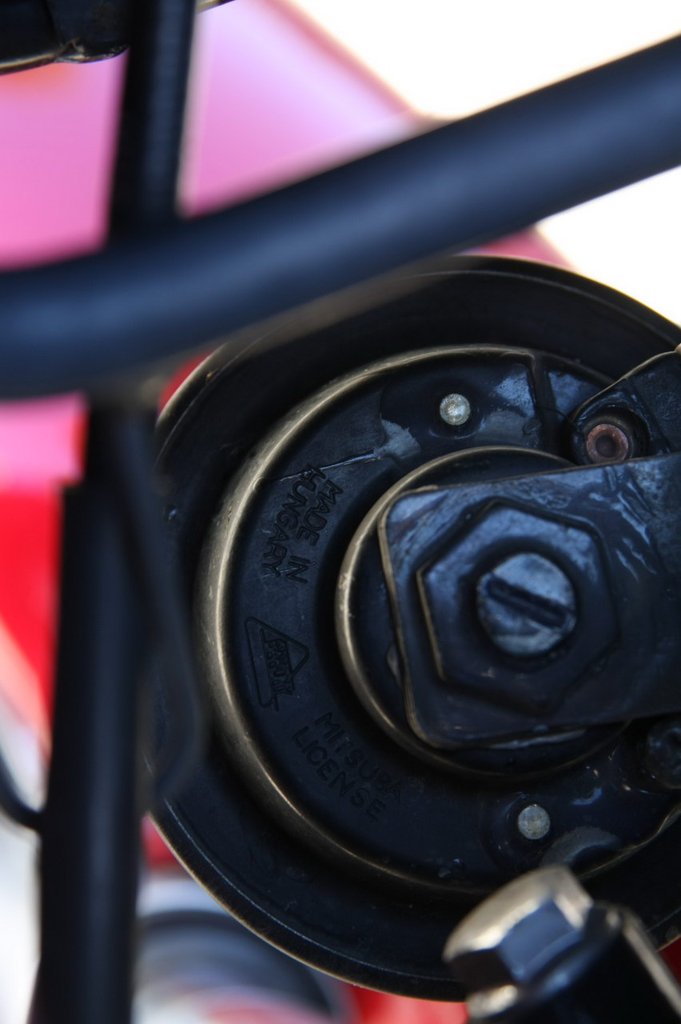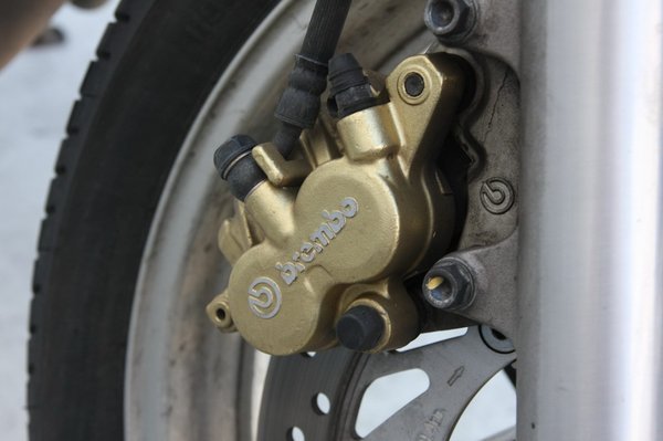 De van pár apróság, ami eltér, elvégre a CB hat évvel fiatalabb, 2002-es, modernebbek a kapcsolói, más a tükörfelfogatás, de maga a tükör is. Mintha némi fájdalmat éreznék Péter hangjában, amikor azt mondja: a te fékeid Nissinek, az enyémek meg Brembók... Egyébként Nissin vagy Brembo, tökugyanolyanok. Legalábbis elöl, az én hátsó tárcsám ugyanis kisebb átmérőjű, a CB-é 240 mm-es, más a féknyereg is. Érdekesség, hogy a CB500 a gyártás első éveiben (93-97 között) hátul dobfékkel készült.