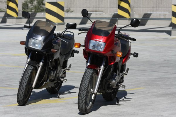 Amikor kiderült, hogy Péternek egy ilyen CB500 S-e van, gondoltam, jó lenne az életben is összenézni őket, vajon miben különböznek, sőt, megérne egy használttesztet is, elvégre van jelentősége a piacon – szemben a Xelvisemmel. A CB500-as Olaszországban készült és csak Európában árulták, ami – az autókból kiindulva – elég elrettentően hangzik. Ám félmillió forint alatt már válogatni is lehet belőlük, ami csábító.