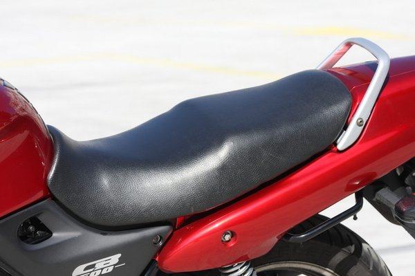 A CB500 egyébként egy régi vágású motor. Vannak rajta rendes csomagrögzítési lehetőségek, sőt, a hatalmas ülés alatti rekesze is van, bár valamiért a CB-é egy leheletnyivel kisebb, mint a Xelvisé, bár, ha ez 7 liter, akkor az ötszázasé 6,5. Vagyis szokatlanul nagy, elfér egy esőruha a szerszámkészlet, eü-csomag és pár apróság mellett. Sőt, a félidom peremében, a jobb oldalon van egy rekesz fedéllel, Péter többek között a füldugóit tartja itt, de berakható a parkolókártyától pótizzóig minden. És mint minden ódon motornak, ennek is van rendes középállványa, nincs szenvedés, ha be kell fújni a láncot. Ezek apróságok, de jól esnek egy hondás lelkének, higgyék el.