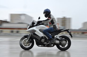 A kombinált fékek adagolhatósága korrekt, az ABS-szel megtámogatott rendszerre nincs panasz, igaz, fémfonatos fékcsövekkel még lehetne javítani a fékérzeten – az európaiakkal ellentétben ezt a trükköt a japán gyártók valamiért nem alkalmazzák, a többmilliós gépeiket is gond nélkül kiadják gumicsövekkel.