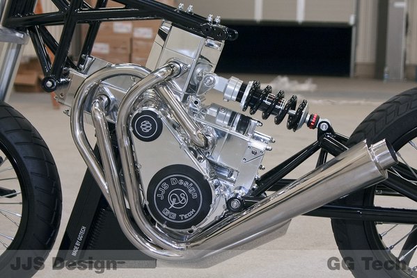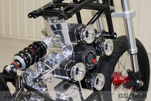 A négy membránvezérelt, kétütemű hengert szokatlan mechanizmus köti össze. A két-két egymással szemben elhelyezett dugattyút mereven köti össze egy-egy rúd, és ezek középen egy-egy keresztirányú kulisszával csatlakoznak a főtengelyhez. A JJ2S 500 X4 így meglepően kevés vibrációval jár - ezért is építhetik össze mindenféle csillapítás nélkül a motorkerékpár vázával. Az ötlet nem teljesen új, régebben már kísérleteztek hasonló négyhengeresekkel, igaz, azokat elsősorban repülőgépekbe szánták.