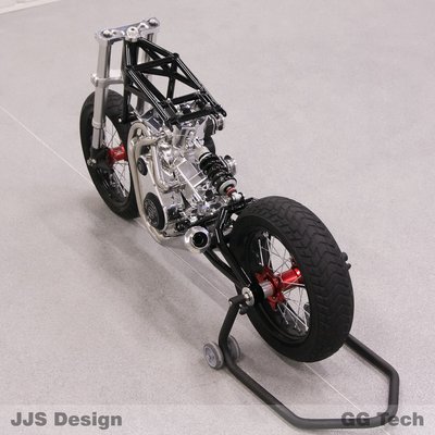A tervek szerint a teljesítmény 110 lóerő lesz 8000-es fordulaton. Az üzemanyagot Synerject befecskendező juttatja az 56,4 x 50 mm furat-löket arányú hengerekbe. A tenyérnyi térhálós csőváz gyönyörűen passzol a minimalista formatervhez – őszintén reméljük, hogy legalább egy példány elkészül J. Jacek Synakiewicz motorjából. Őrült zsenikre és szép tárgyakra mindig szükség van.