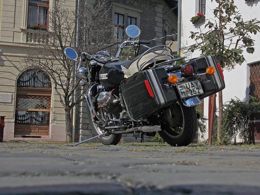 Az eredeti dobozok már nincsenek meg, az előző gazda egyedileg készült konzolra nagy űrtartalmú német koffereket akasztott. A gyáriak valóban elég aprók, a mostaniakkal egy túrára is könnyebb elindulni – Soma nem is a garázsnak vette a gépet, idén is egy hosszúra nyúlt alpesi túrán vett részt, amit megbízhatóan, 6,5 literes átlagfogyasztással teljesített a motor.