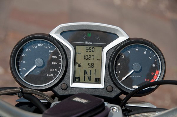 Hamar meg lehet találni a váltási pontokat a kellemes motorozáshoz, ebben partner a jó kiosztású, de letagadhatatlanul BMW-s, nyers váltó is. Nekem valamiért mindig mezőgazdasági munkagépek jutnak róla eszembe, annyira érezni a merev váltókaron a kapcsolódó forgó tömegeket - a jóllakott klattyanás minden váltáskor úgy hozzátartozik a bajorokhoz, mint a sörpad az Oktoberfesthez. Az R1200R-en persze nem a kínai, szálkás sörpadra kell gondolni, hanem egy tökéletesen simára gyalult, rozsdamentes acél lábakon álló, de ugyanolyan jellegű szerkezetre.