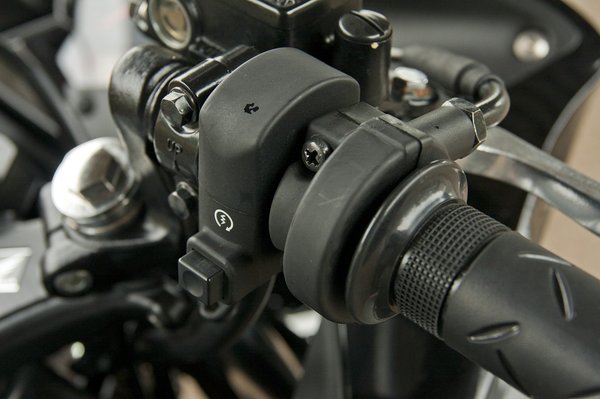 Hogy mást ne említsek, a kapcsolóegységek egészen kezdetlegesek, különösen a jobb oldalon, ahol a nyomorult indítógomb szomorkodik. Valamiért nincs leállító kapcsoló, de talán ez nem is baj, minden kezdőt megszívat egyszer. A távfényt is egy béna nyomógombbal lehet kapcsolni. Nincs az, hogy az ember odaáll egy Keeway mellé, és megnyugtatóan annyit mond magának: hiába, azért ez egy Honda.