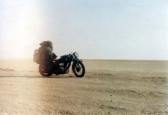 Egyedi tervezésű, de tudom, hogy visszataszító; ez nem véletlenül ilyen csúnya. A foltos festés, a csúf hegesztések csak elriasztják a tolvajokat – Afrikában erre különösen érdemes figyelni. Amellett, hogy így néz ki, azért jól működik: a tangenciális geometriájú rugózással változtatható az előfeszítés és a csillapítás. Nincs feszültség, sehol sem nyíródik vagy kopik feleslegesen, sőt, a csomagok is csillapítva vannak, ami például a kameráknak nagyon fontos – ha tehetem filmes képeket készítek, szintén régi eszközökkel. (A galériában levő motoros képek Szirmai Gábor egy korábbi szaharai útján készültek, hagyományos, analóg technikával.)