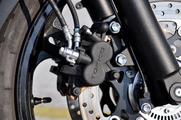 Kizárólag blokkolásgátlóval felszerelt változatot árulnak itthon az új V-Stromból. Az ABS nem kikapcsolható, aszfalton nem tolakodó a működése, terepen pedig jobb lenne, ha soha nem avatkozna be. A gyári gumiabroncsok tapadása nedves úton pocsék.