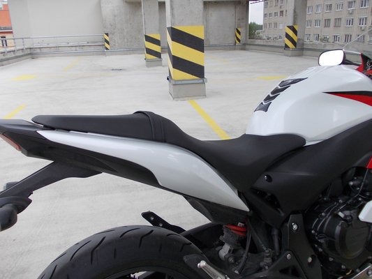 A felhasználóbarátság olyan apróságokon is tetten érhető, mint az utaslábtartók elhelyezése. Nem a farokról lógattak le valami pálcikát, hanem a vázhoz csatlakozik, így lényegesen lejjebb került, mint ahogy a sportmotoroktól megszoktuk. Ezek az előnyök az utcai, meztelen Hornet hátsóval jöttek, akárcsak a normálisan párnázott utasülés is.